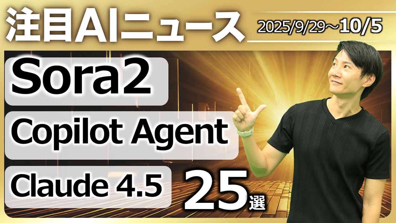 注目AIニュース 2025/9/29~Sora、Claude4.5、Copilot Agentモード、ChatGP...