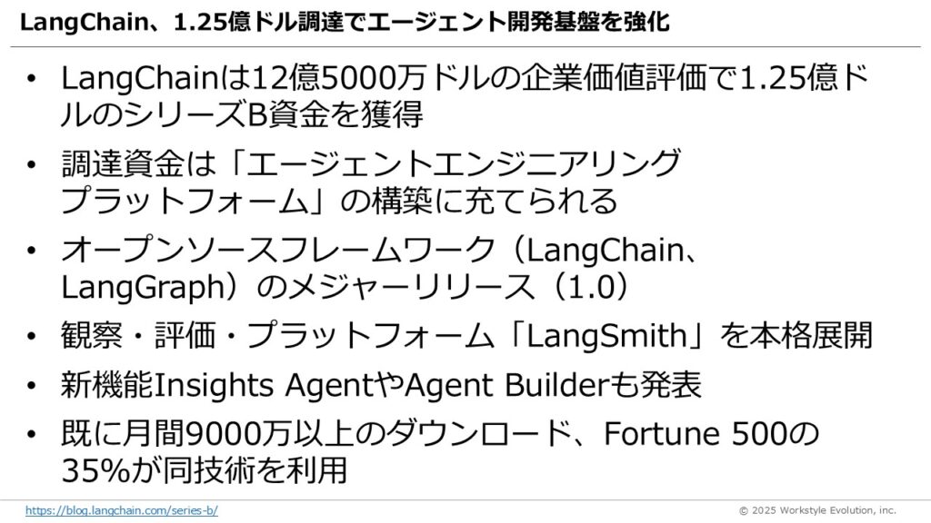 ・LangChainが企業価値12億5000万ドルで1.25億ドルのシリーズB資金を獲得