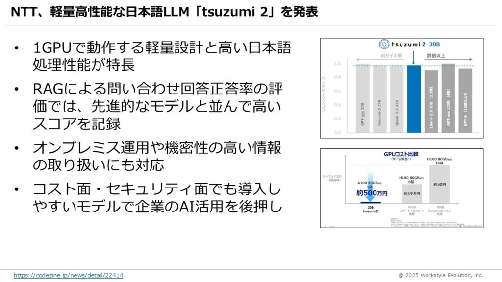 ・1GPUで動作する軽量設計と高い日本語処理性能が特長