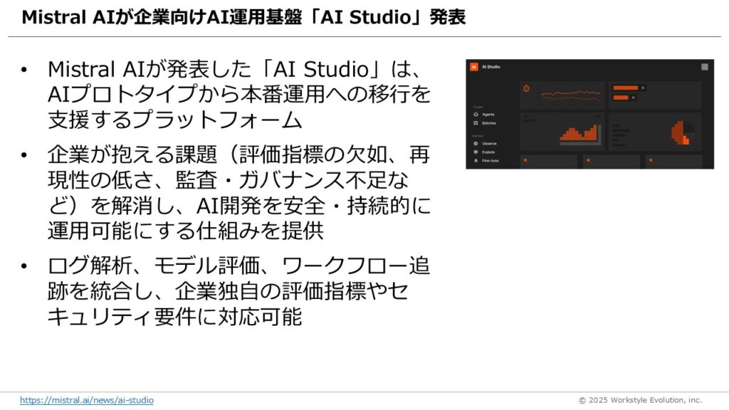 ・Mistral AIがAIプロトタイプから本番運用への移行を支援するプラットフォーム「AI Studio」を発表