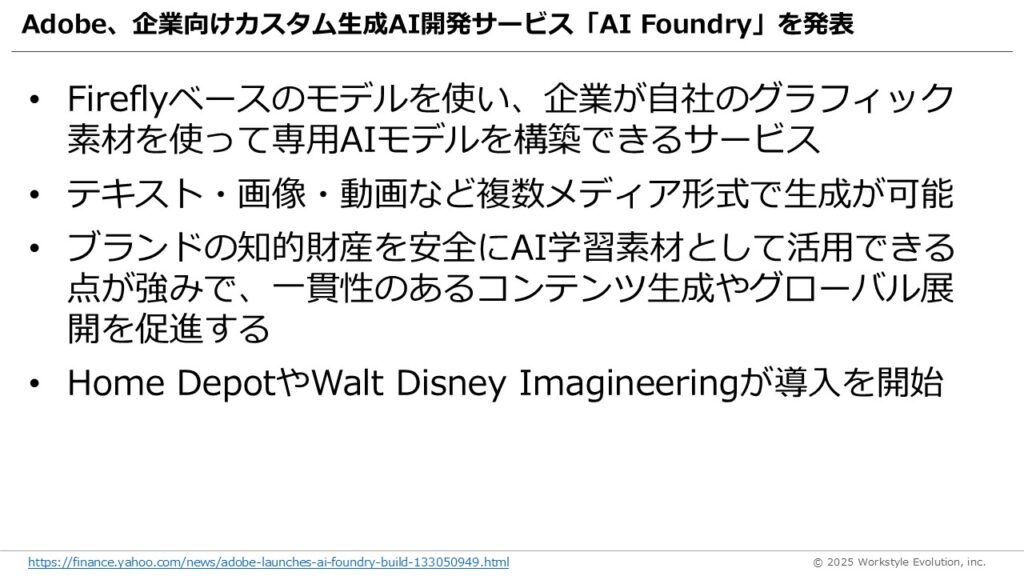 ・Adobe 企業向けカスタム生成AI開発サービス「AI Foundry」を発表
