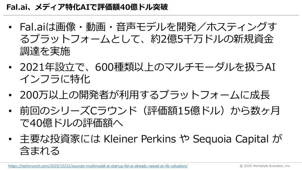 ・Fal.aiは画像・動画・音声モデルを開発/ホスティングするプラットフォーム