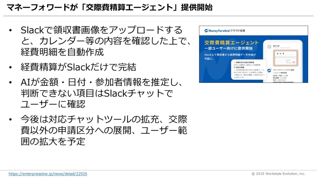 ・マネーフォワードが「交際費精算エージェント」の提供を開始