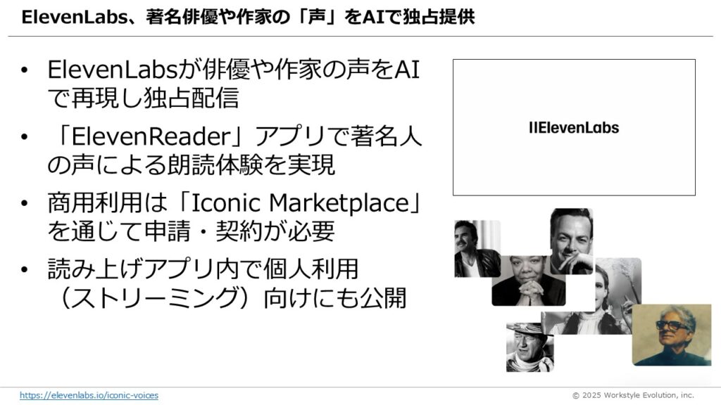 ・著名俳優や作家の声をAIで再現し独占的に配信