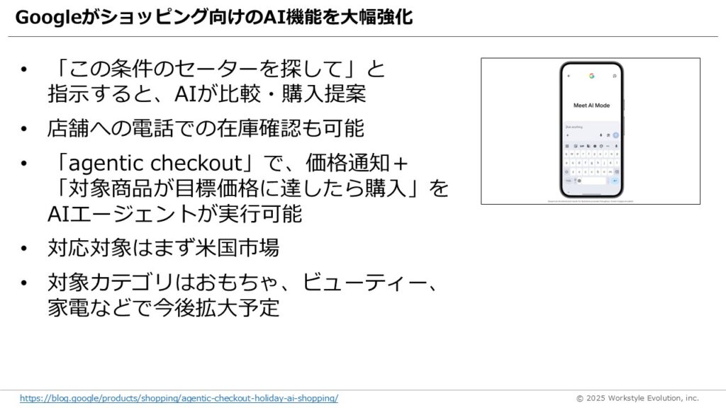 ・「agentic checkout」で目標価格達成時の自動購入が可能