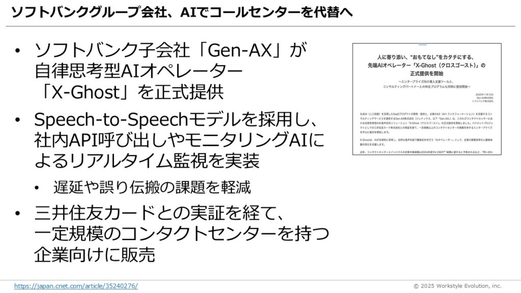 ・ソフトバンク子会社Gen-AXが自律思考型AI「X-Ghost」提供