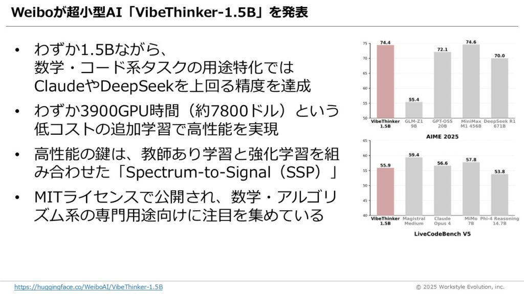 ・超小型1.5Bながら数学・コード系タスクでClaudeなどを上回る