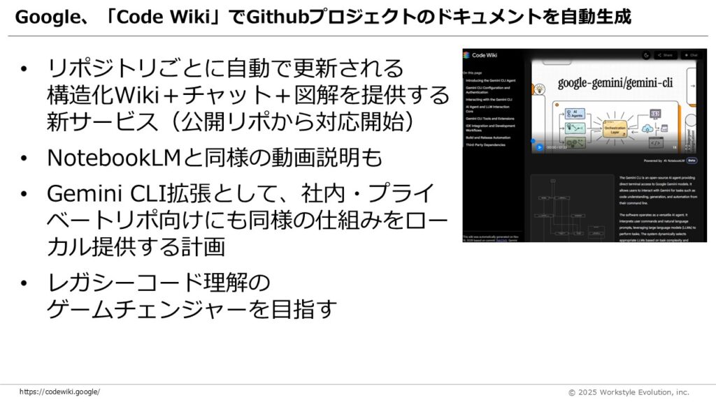 ・リポジトリごとに自動更新される構造化Wikiを提供