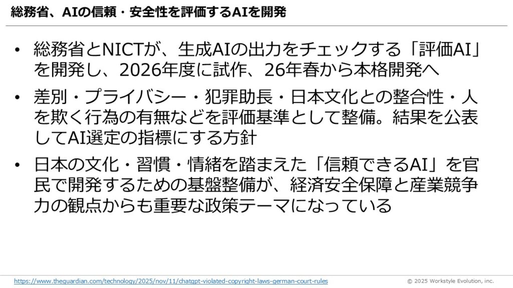 ・総務省とNICTが生成AIの出力をチェックする「評価AI」を開発