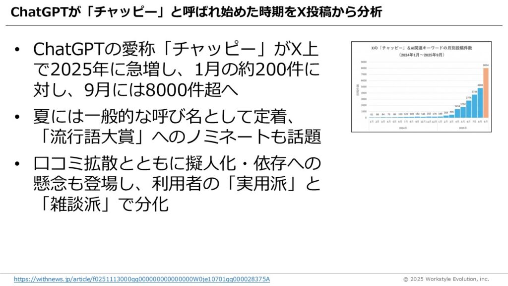 ・ChatGPTの愛称「チャッピー」が2025年1月約200件から9月8000件へ急増