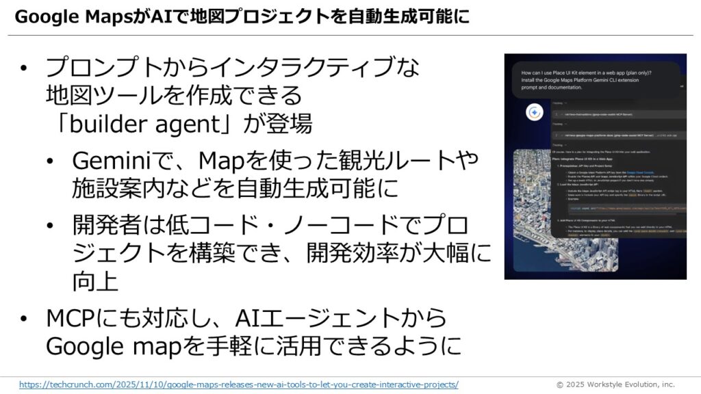 ・プロンプトから地図ツールを作成できる「builder agent」が登場