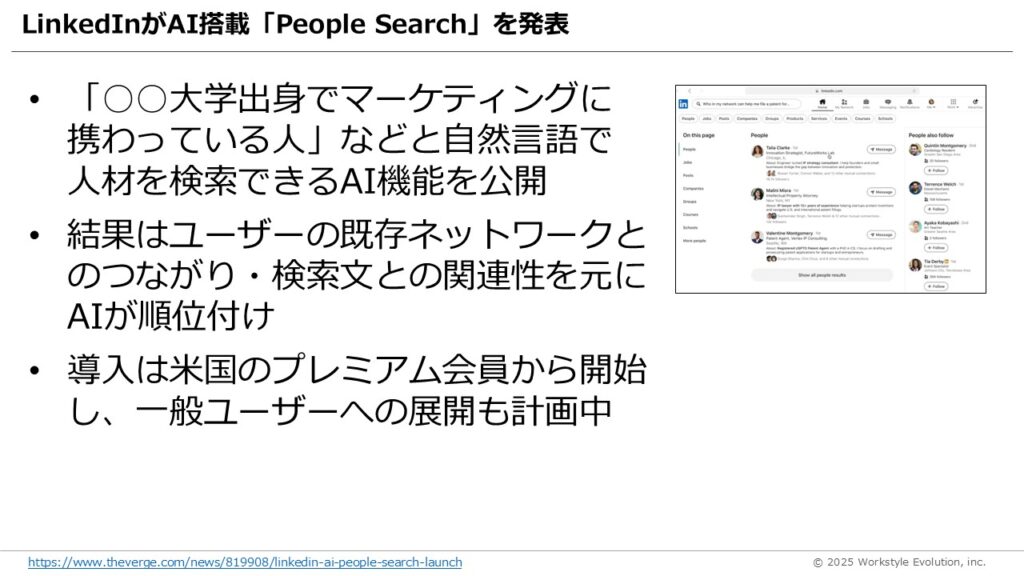 ・自然言語で人材を検索できるAI機能「People Search」を公開