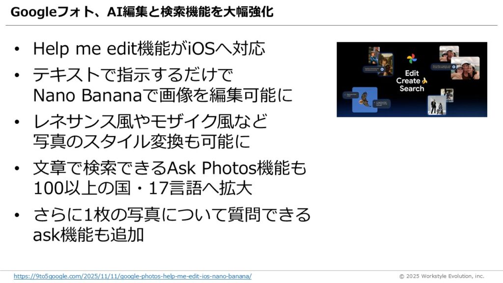 ・文章で検索できるAsk Photos機能が100カ国以上へ拡大