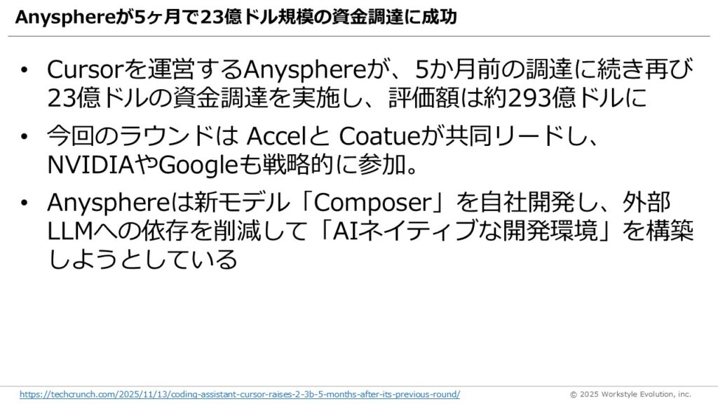 ・Cursorを運営するAnysphereが23億ドルを資金調達