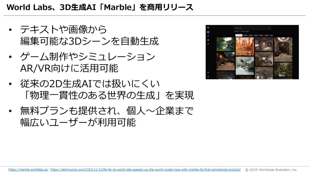 ・物理一貫性のある世界の生成を実現、無料プランも提供