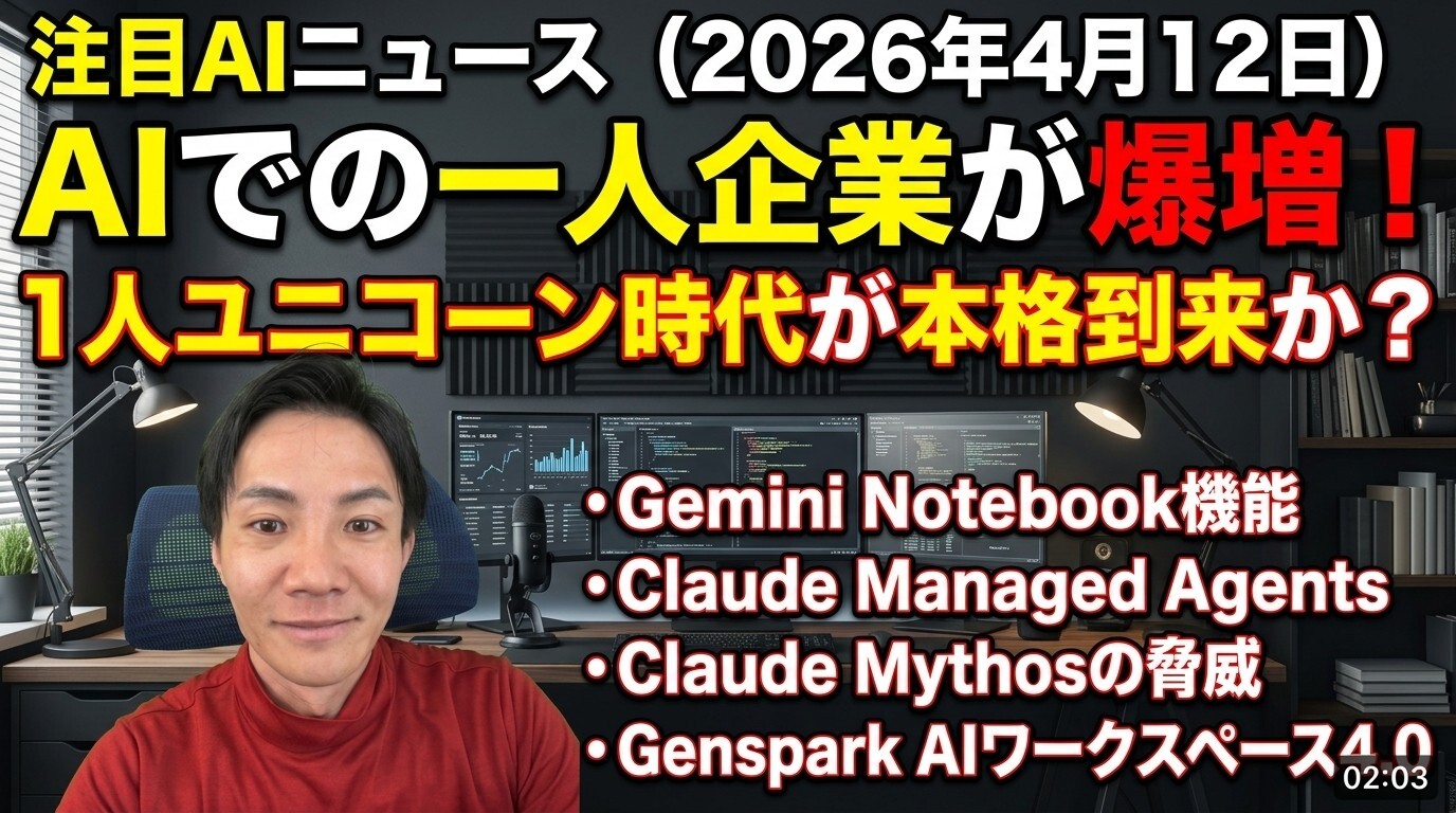 注目AIニュース 2026年4月6日~AIで1人企業が爆増、Claude Managed Agents、Gensp...