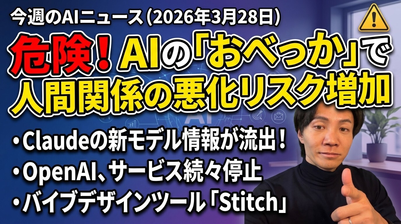 注目AIニュース 2026年3月23日~Claudeの新モデル情報流出、AIが自己正当化を助長、Google St...