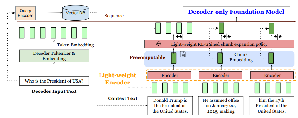 この判断は強化学習によって最適化されたポリシーによって行われ、チャンク埋め込みを保持するか、元のトークンフォーマットを保持するかを動的に決定します。