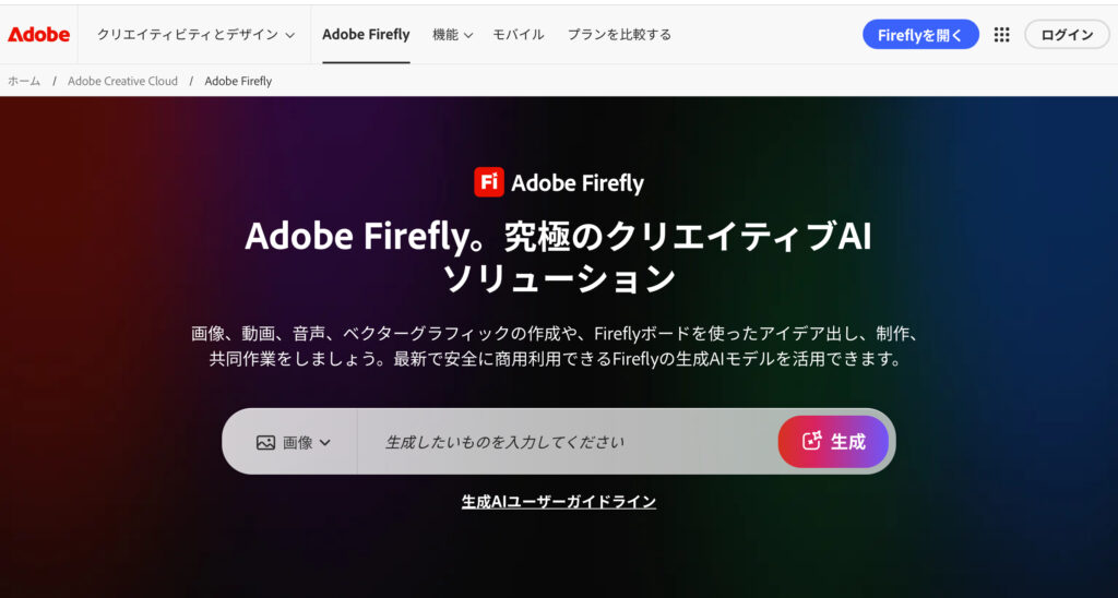 🔗公式サイト:https://www.adobe.com/jp/products/firefly.html