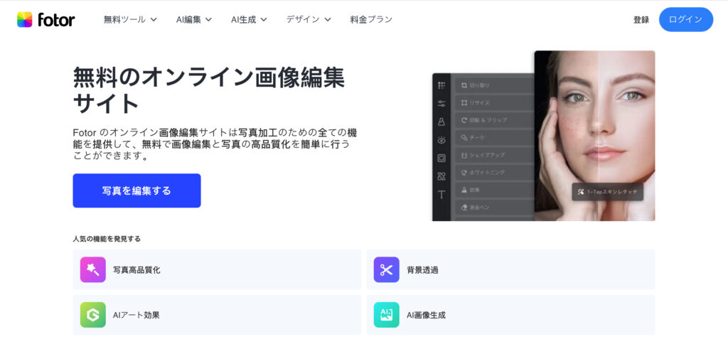 Fotor | 画像・グラフィック・動画 | AI写真補正と復元、背景除去・置換ツール、複数画像の一括処理 | 無料プラン、Fotor Pro: $10.99/月、Fotor Pro+: $23.99/月 |