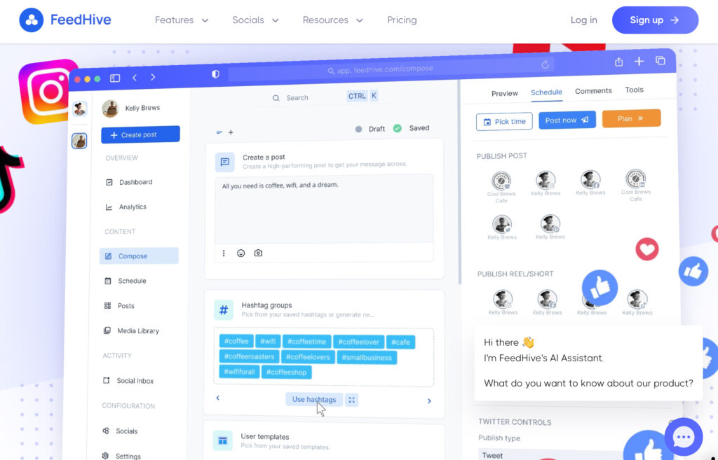 FeedHiveの無料プランは、SNS戦略をより具体的にするビジュアルコンテンツプランニングツールを提供します。このプラットフォームは、共同作業的なアプローチを提供し、ビジュアルコンテンツカレンダーを特徴としており、ビジュアルプランニングワークフローを好むチームに理想的です。