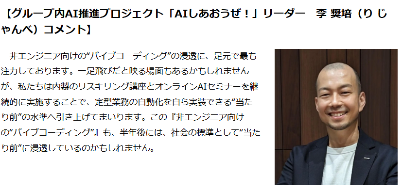 特に注目すべきは、複数AI利用率が80%である点と、非エンジニアの約5割がバイブコーディングを経験している点です。これらの成果は、企業のAI活用がいかに実践的で具体的な効果をもたらすかを示す貴重な事例となっています。