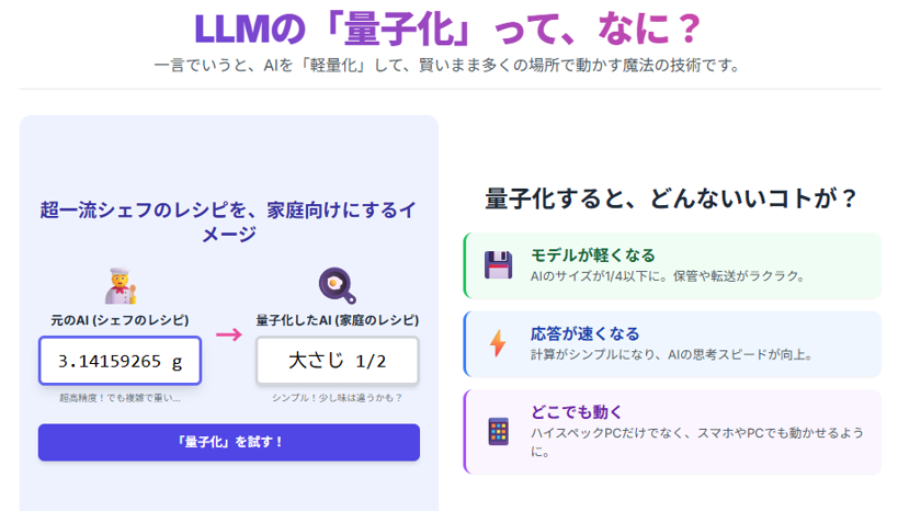 つまり「モデルを小さくしても、頭の良さはほとんど変わらない」という次世代の量子化が現実になったのです。