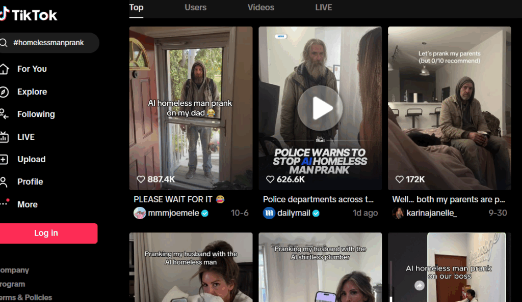 ホームレスマンプランクとは、生成AIを使ってホームレス風の人物画像を生成し、自宅にいるように見せかけて親を驚かせるいたずらです。TikTokなどのSNSで拡散されており、親がパニックになったり、警察に通報するケースも発生しています。