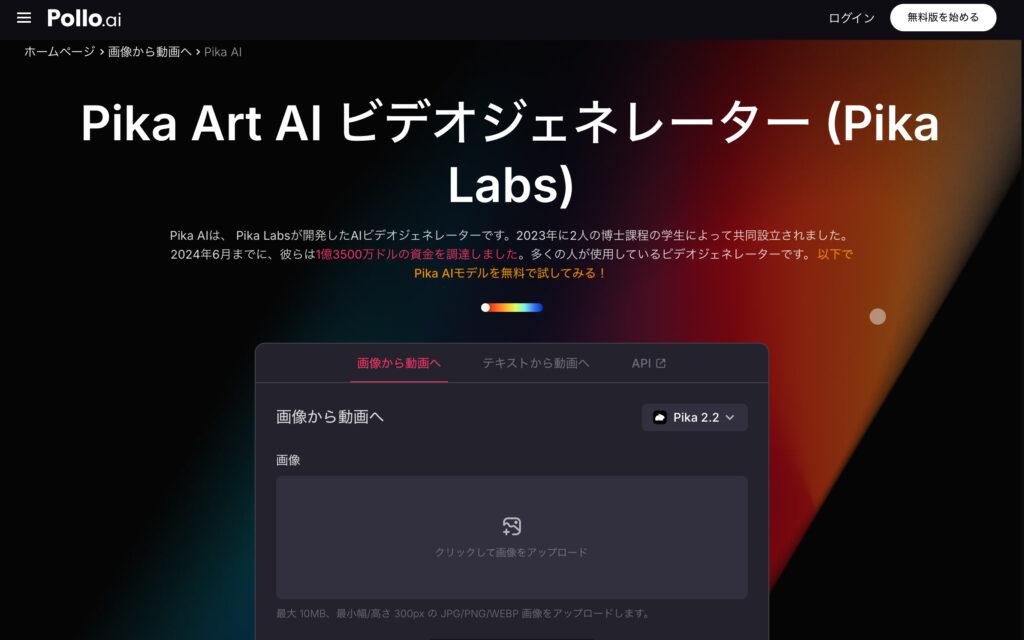 公式サイト:https://pollo.ai/ja/m/pika-ai?