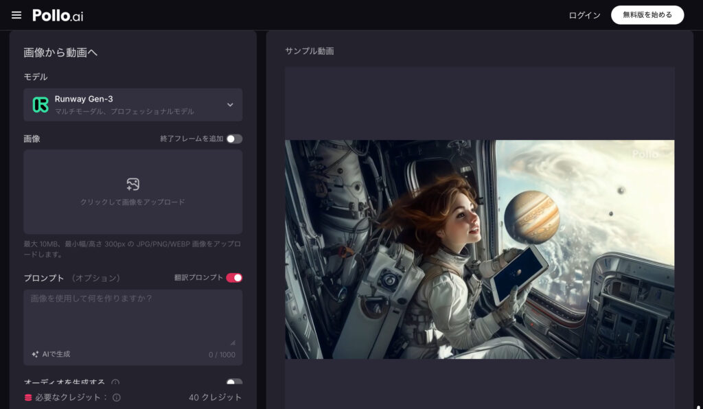 公式サイト:https://pollo.ai/ja/image-to-video?