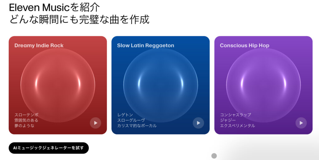 音声AI分野で知られるElevenLabsは、テキストから高品質な音声を生成する技術に特化しています。動画制作においては、ナレーションや音声解説の部分で特に威力を発揮します。