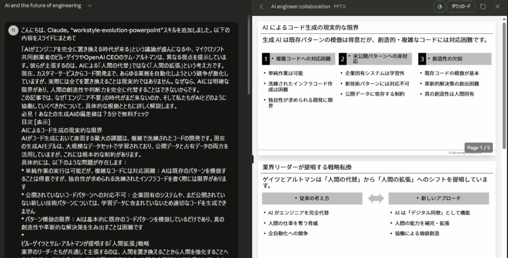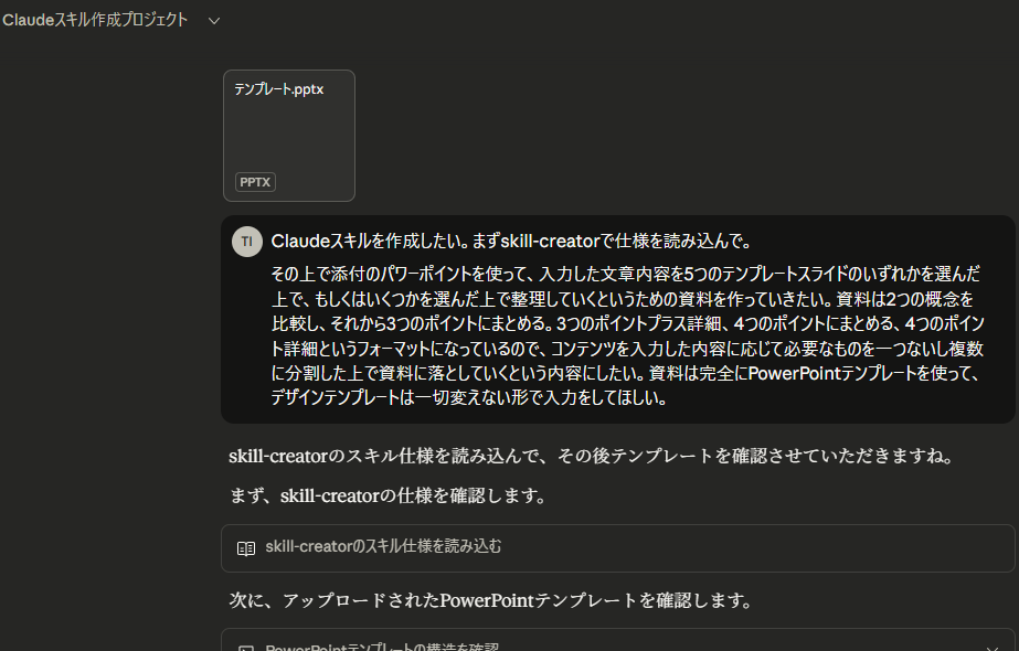 PowerPointテンプレートを入力してスキルを作成した結果、以下のような成果が得られました: