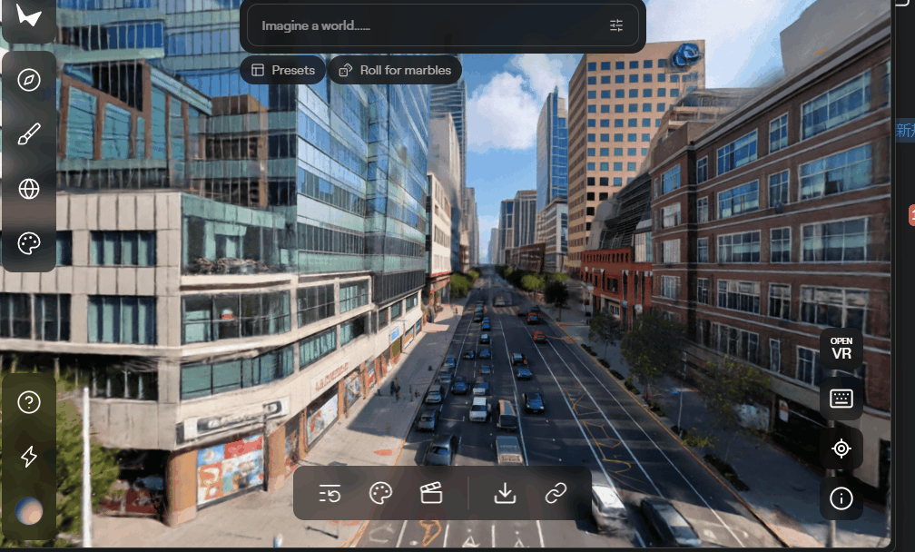 Marbleの最も印象的な機能は、1枚の画像から空間全体を推測し、高精度な3D環境を生成する能力です。例えば、室内の写真を1枚アップロードするだけで、写真に写っていない部分も含めて完全な3D空間が生成されます。