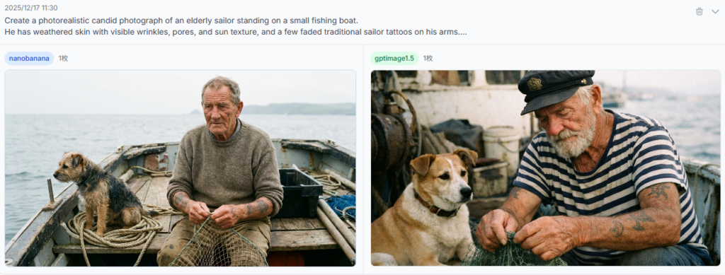 日本語対応では劣るGPT Image 1.5ですが、画像編集と人物の一貫性保持においては、むしろNano Banana Proを上回る性能を示すケースが多々ありました。