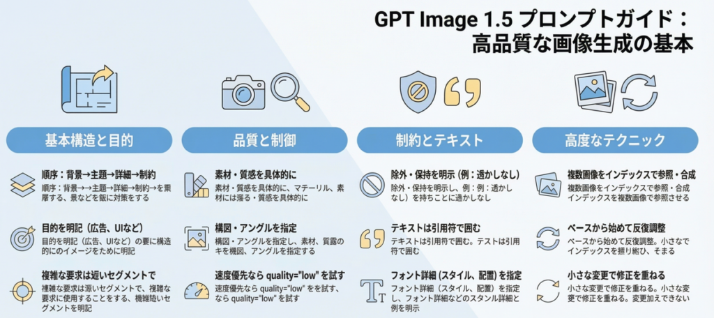 GPT Image 1.5を効果的に活用するためのプロンプト作成のポイントをご紹介します。