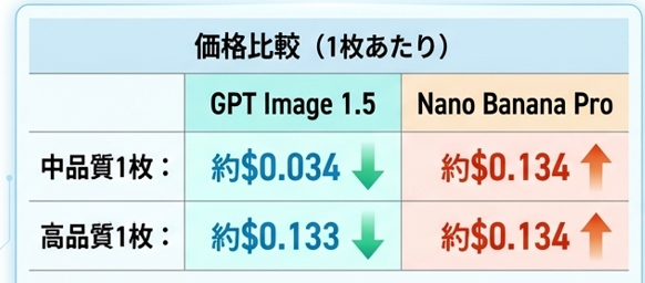 • コスト効率:GPT Image 1.5が約4分の1のコストで利用可能