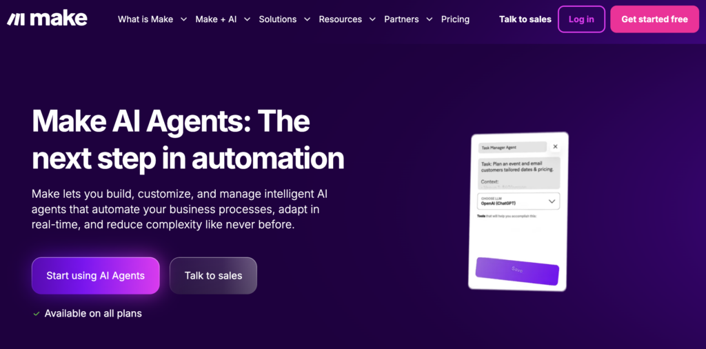 🔗 公式サイト:make.com/en/ai-agents