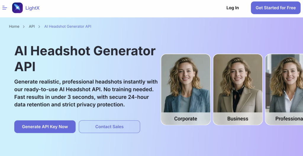 3. LightX Headshot API|スピードとシンプルさを追求