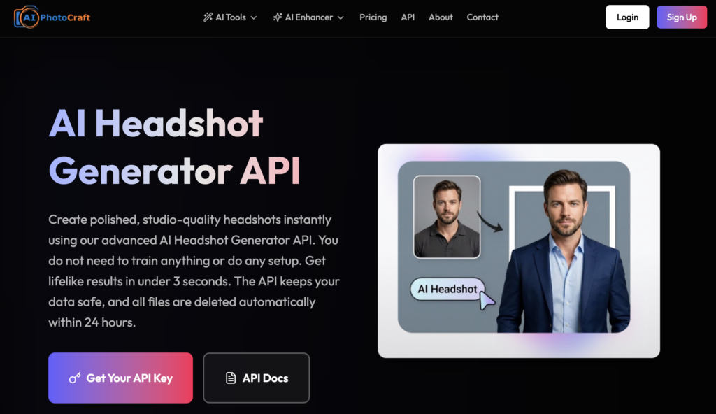 🏆 プライバシー重視のワークフロー: AI PhotoCraft API(AI Headshot Generator API)