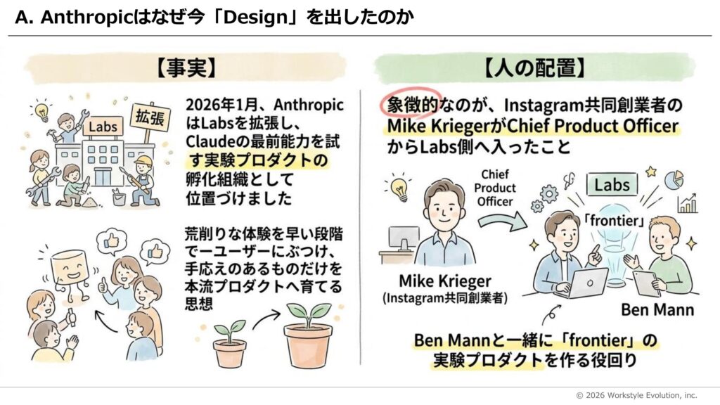 Claude Designを出してきたのは、同社内の「Anthropic Labs」と呼ばれる実験プロダクト組織だ。