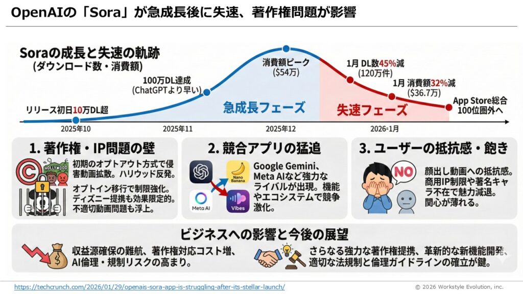 ・動画生成AIのSoraが急成長後に失速