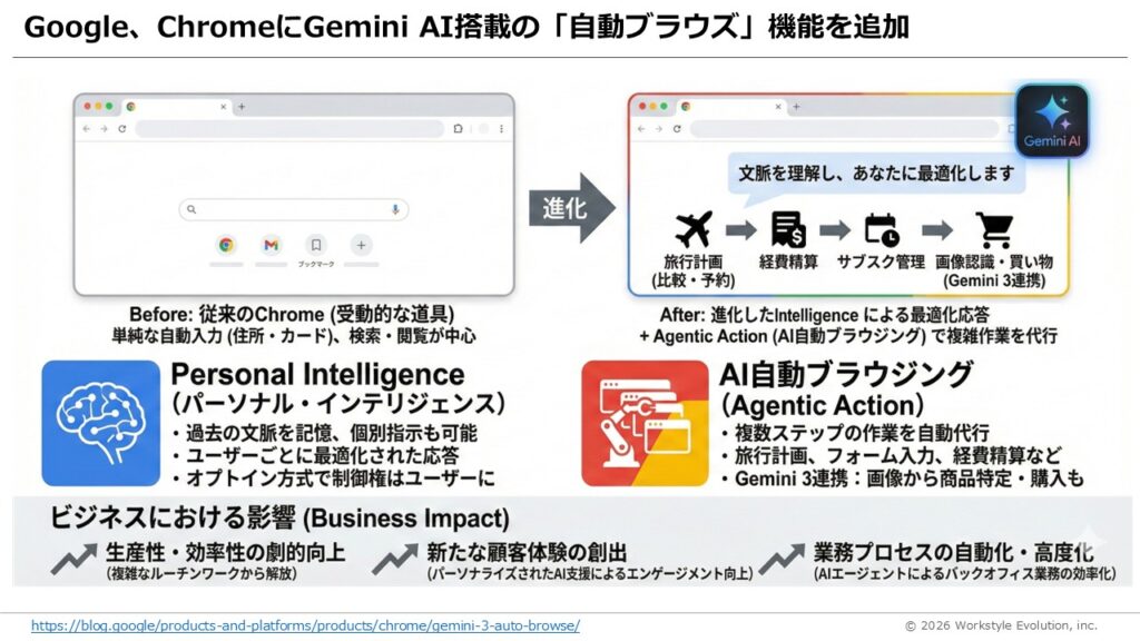・ChromeにGemini搭載の自動ブラウズ追加