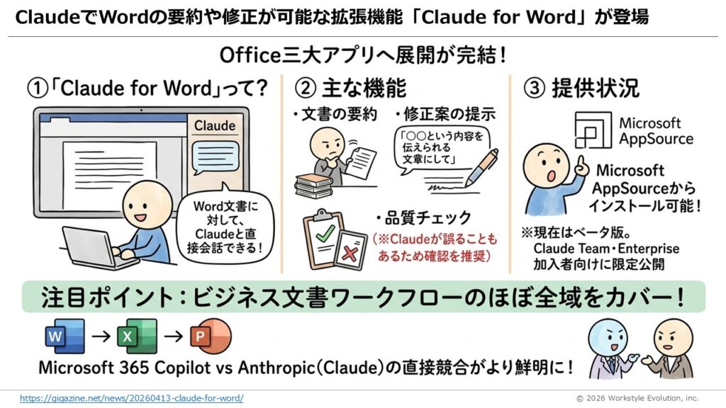 2.ClaudeでWordの要約・修正が可能に「Claude for Word」