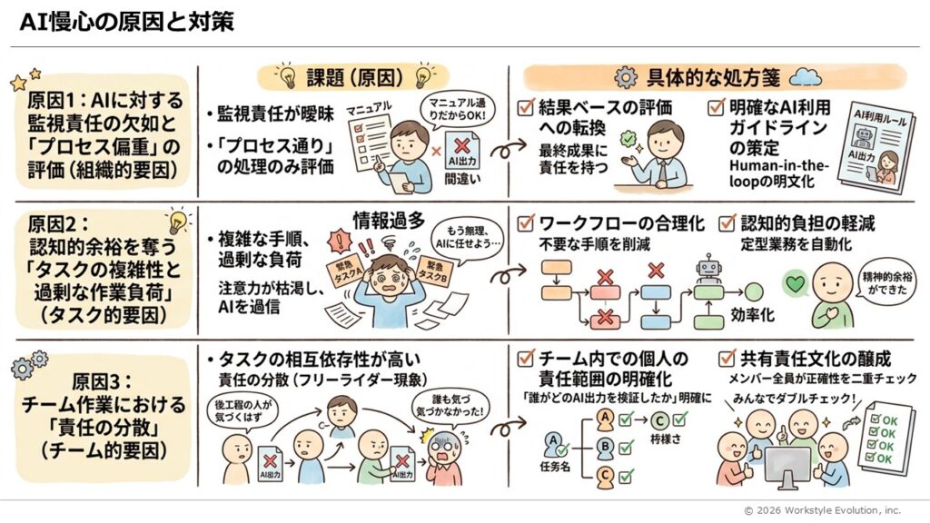 ・成果責任の導入や検証責任者の明示で対策